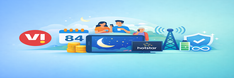 Vi₹9942GB/day84 daysNight unlimited data, weekend rollover, HotstarPower & night users