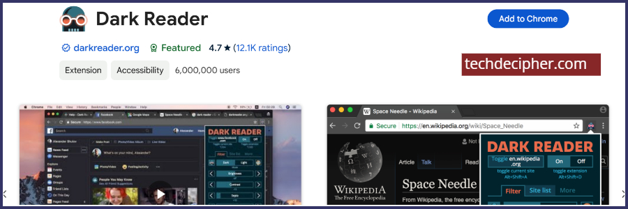 Dark Reader is a must-have extension for anyone who spends long hours browsing the web. It enables dark mode on any website, reducing eye strain and making it easier to read content in low-light environments. The extension automatically inverts bright colors, creating a comfortable viewing experience without compromising the website’s functionality. You can also adjust brightness, contrast, and sepia filters to suit your preferences.