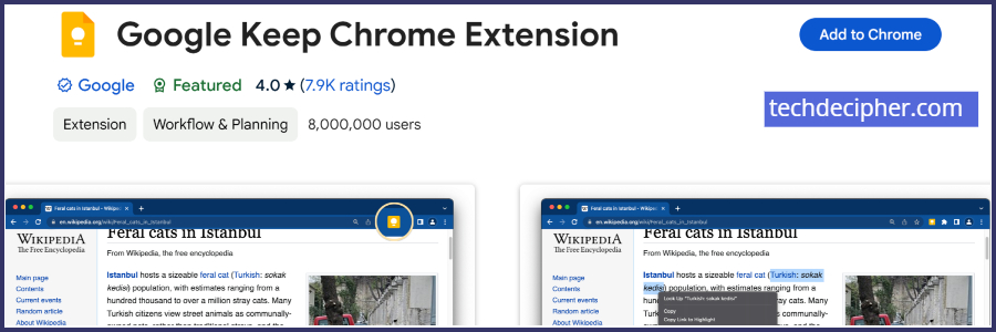 Google Keep’s Chrome extension lets you save notes, links, and ideas directly from your browser. You can access your notes across devices, set reminders, and even collaborate with others in real time. It’s perfect for jotting down quick thoughts or saving articles for later.