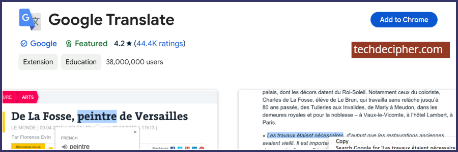 Google Translate’s Chrome extension makes it easy to translate words, phrases, or entire web pages into your preferred language. Simply highlight text or click the extension icon to get instant translations. It’s a lifesaver for multilingual users or those browsing foreign websites.