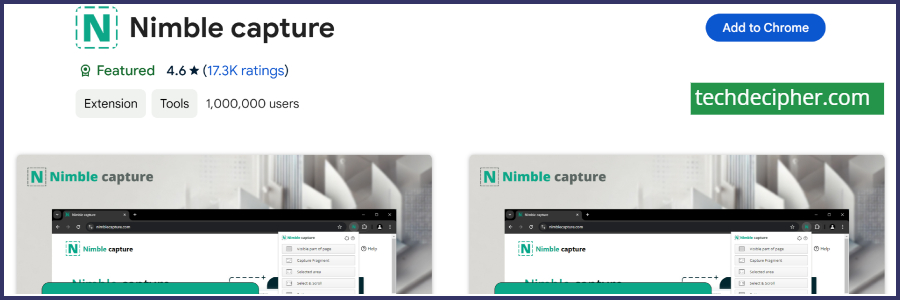 Nimble is a versatile tool for capturing screenshots and recording screen videos. It supports full-page screenshots, scrolling captures, and video recordings with audio. You can also edit and annotate your captures before saving or sharing them.
