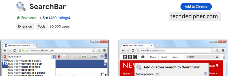 SearchBar adds a customizable search bar to Chrome, allowing you to search Google, YouTube, Wikipedia, and more without opening a new tab. It’s a time-saver for frequent searchers.