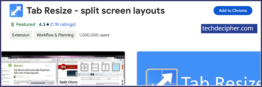 Tab Resize is a productivity gem for users who frequently work with multiple tabs. It allows you to split your browser window into multiple resizable layouts, making it easy to view and compare different tabs side by side. Whether you’re coding, researching, or managing multiple tasks, this extension helps you stay organized and efficient.