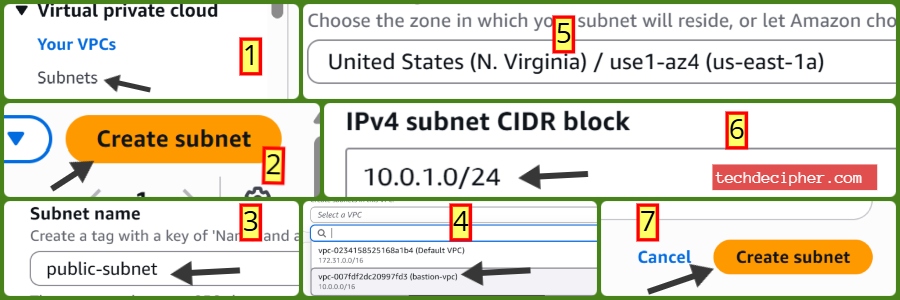 Go to Subnets → Click Create Subnet.