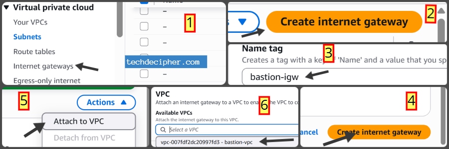 Click Create and then Attach to VPC → select bastion-vpc.