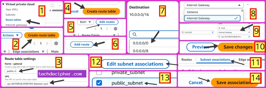 Go to Subnet Associations → Associate with public-subnet.