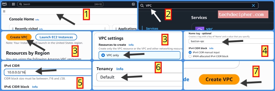 Log in to AWS Console → Navigate to VPC Service → Click Create VPC.