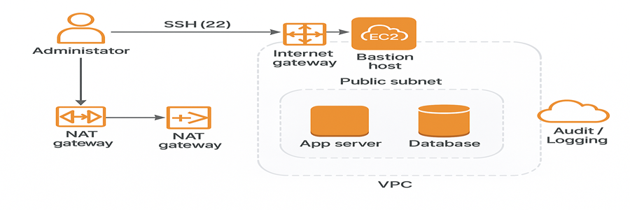 • Least privilege: You control inbound rules to the bastion and allow SSH (or SSM) from it to private instances nothing else.